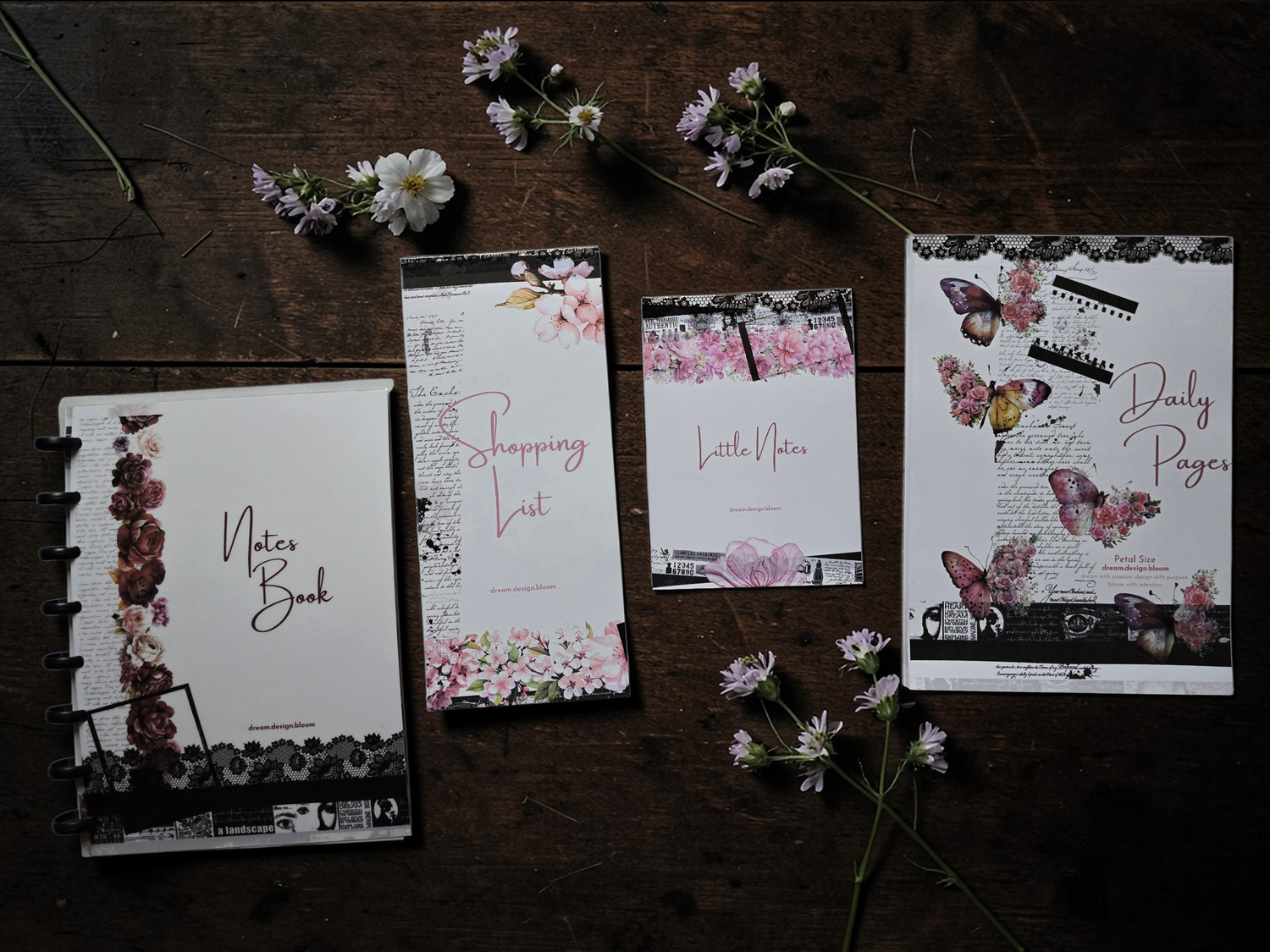 Discover the complete dream.design.bloom collection in one place. From boutique discbound planners and planner inserts to sticker books and coordinated discbound planner accessories, explore every piece designed with beauty, clarity, and intention.