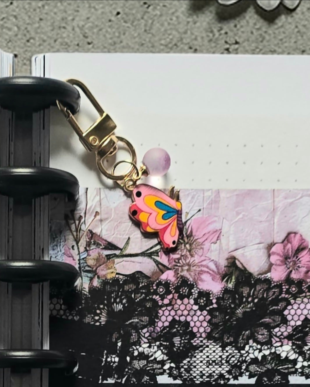 A delicate charm designed to bring a soft touch of beauty to your pages.